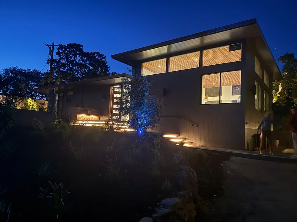 Pavers, concrete steps, lighting, planters, irrigation, handrails, plants, mulch & gravel
